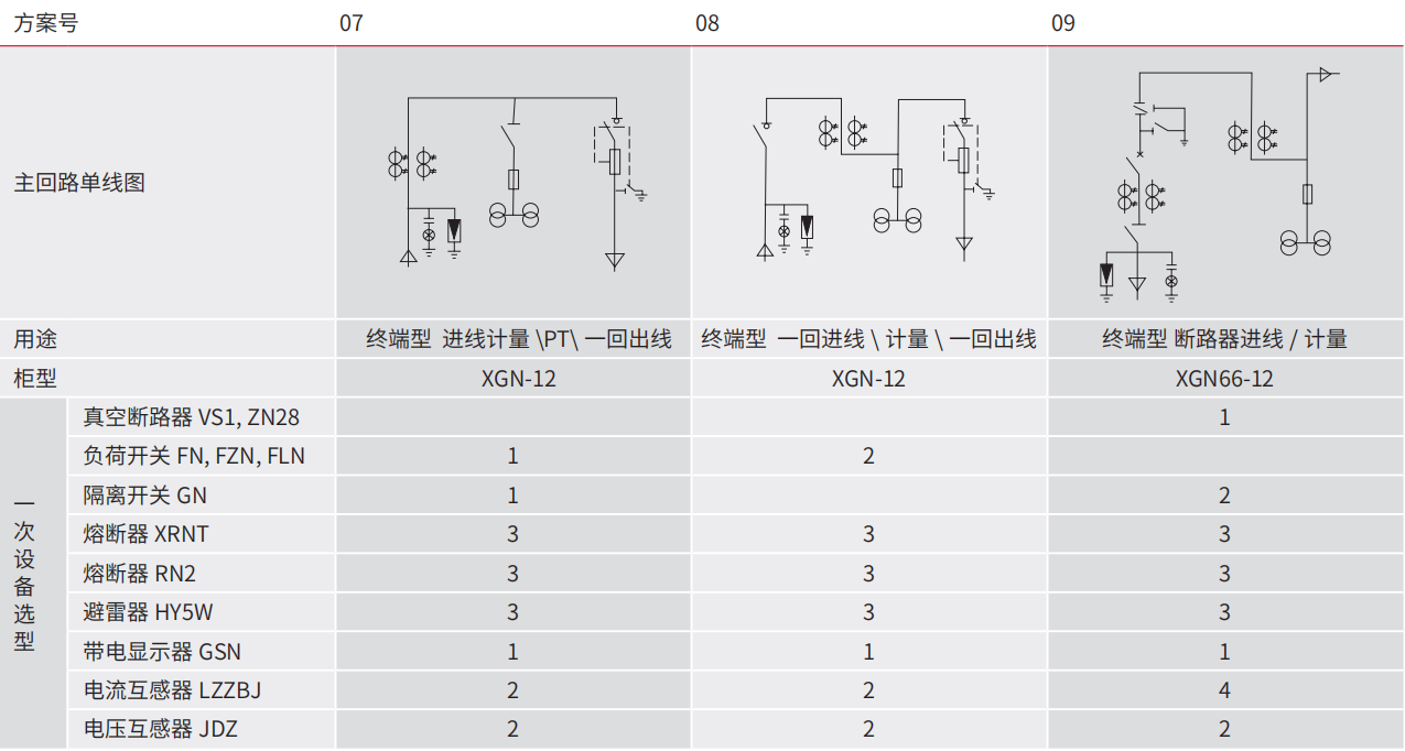 智能型一体化变电站高压一般采用负荷开关-熔断器组合电器保护,熔断器一相熔断后,三相联动脱扣,负荷开关有压气式、真空、六氟化硫等型式可选,可配电动操作机构,实现自动化升级;熔断器为高压限流熔断器,带撞击器,动作可靠,开断容量大,主要技术参数见下表。对于800kVA以上的变压器,可选用ZN12, ZN28,VS1等真空断路器保护。
